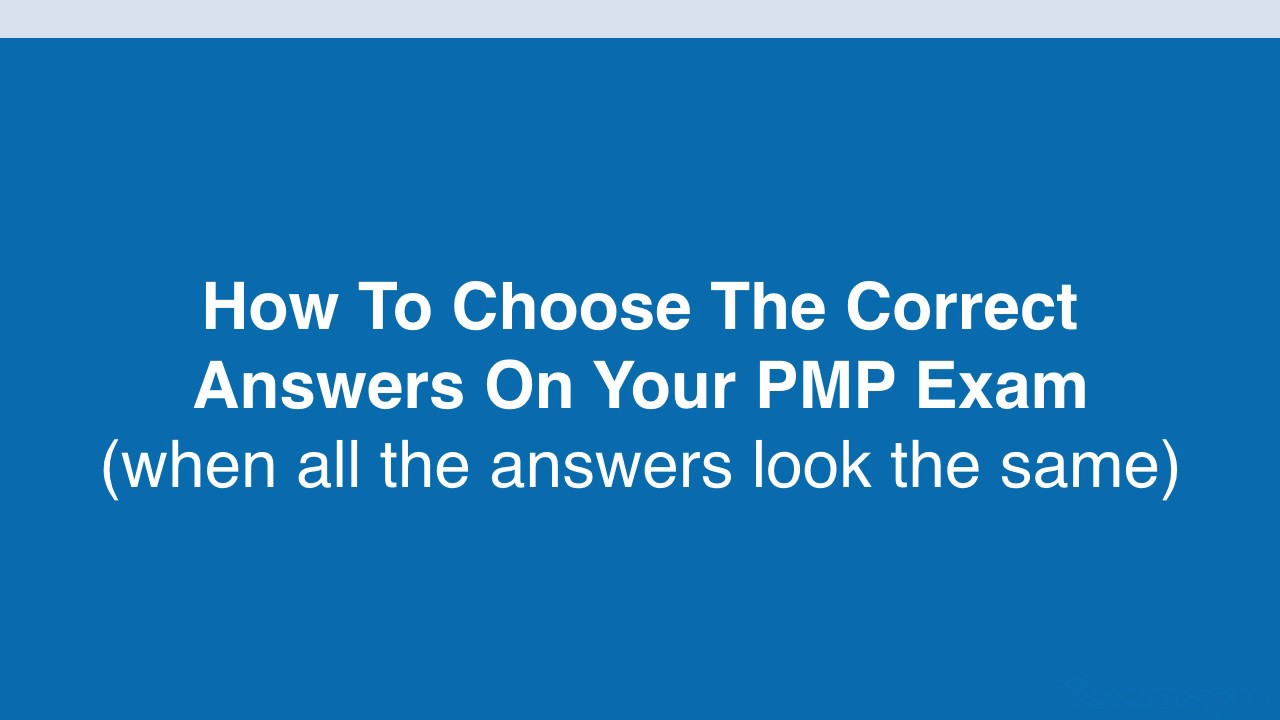 How To Choose The Correct Answers On Your PMP Exam. To learn more tips like this one, be sure to sign up for our FREE training at Have you ever taken sample PMP practice questions and felt like all the answers look the same?