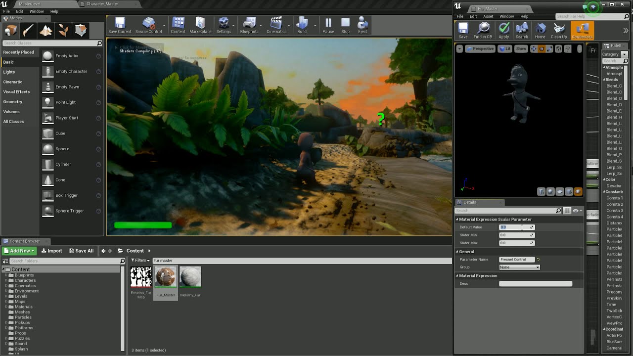 Messing around in the Unreal Engine 4 editor with an outline effect for my characters, to emphasize the geometry and help "pop" them off the screen a little