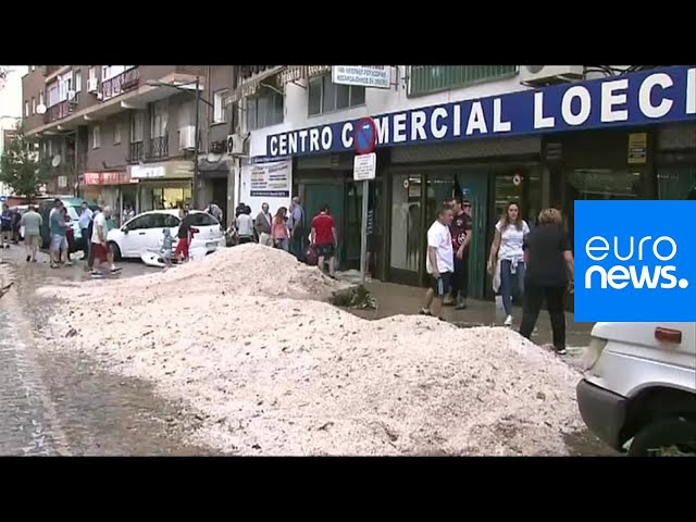 A severe hailstorm hit Madrid paralysing roads and causing flash flooding.…