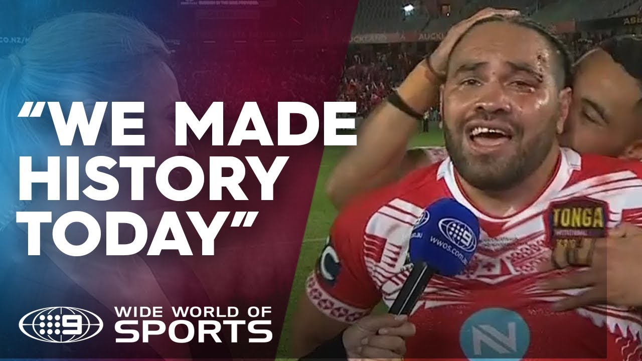 Konrad Hurrell breaks down in an interview with Wide World of Sports after Tonga's upset win over the Kangaroos. Subscribe here: For analysis click here: