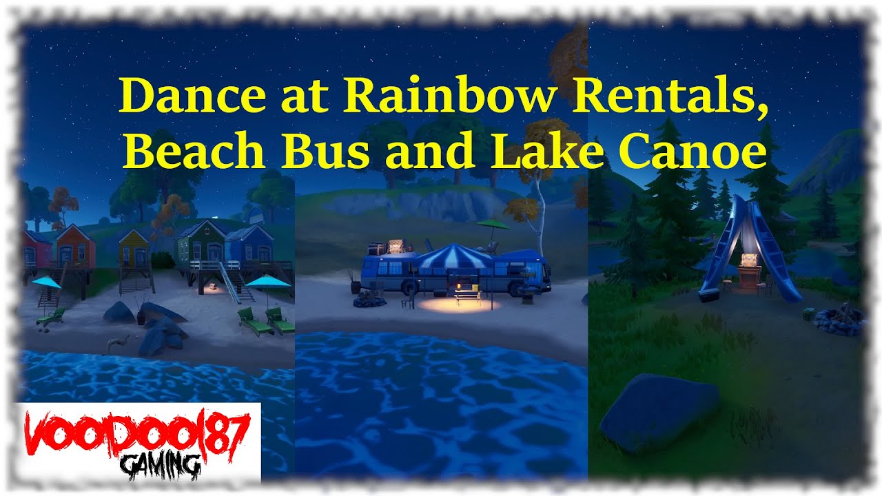 Fortnite - Dance at Rainbow Rentals, Beach Bus and Lake Canoe 8-Ball Vs. Scratch Mission Challenges